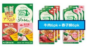 (チキン・馬肉・かつお 30g 各種3袋(合計9袋)のアソートセット)をご注文いただくともれなく yum yum yum!牛肉 30g を お試し用に1袋プレゼント!