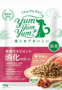 yum yum yum ! (ヤムヤムヤム)は、毎日のおいしいごはんで家族のしあわせをつくる、を目指してうまれたドッグフード。
