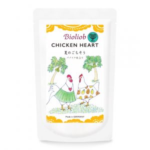 ビオの鶏ハツを主役に、レバーと砂肝の旨みを重ねた、食欲が落ちがちな季節にうれしいメニューです。パパイアのフルーティーな甘みとバジル・フェンネルの爽やかな香りを添えて、夏らしい一皿に仕立てました。犬猫の食の専門家ペットフーディスト監修。